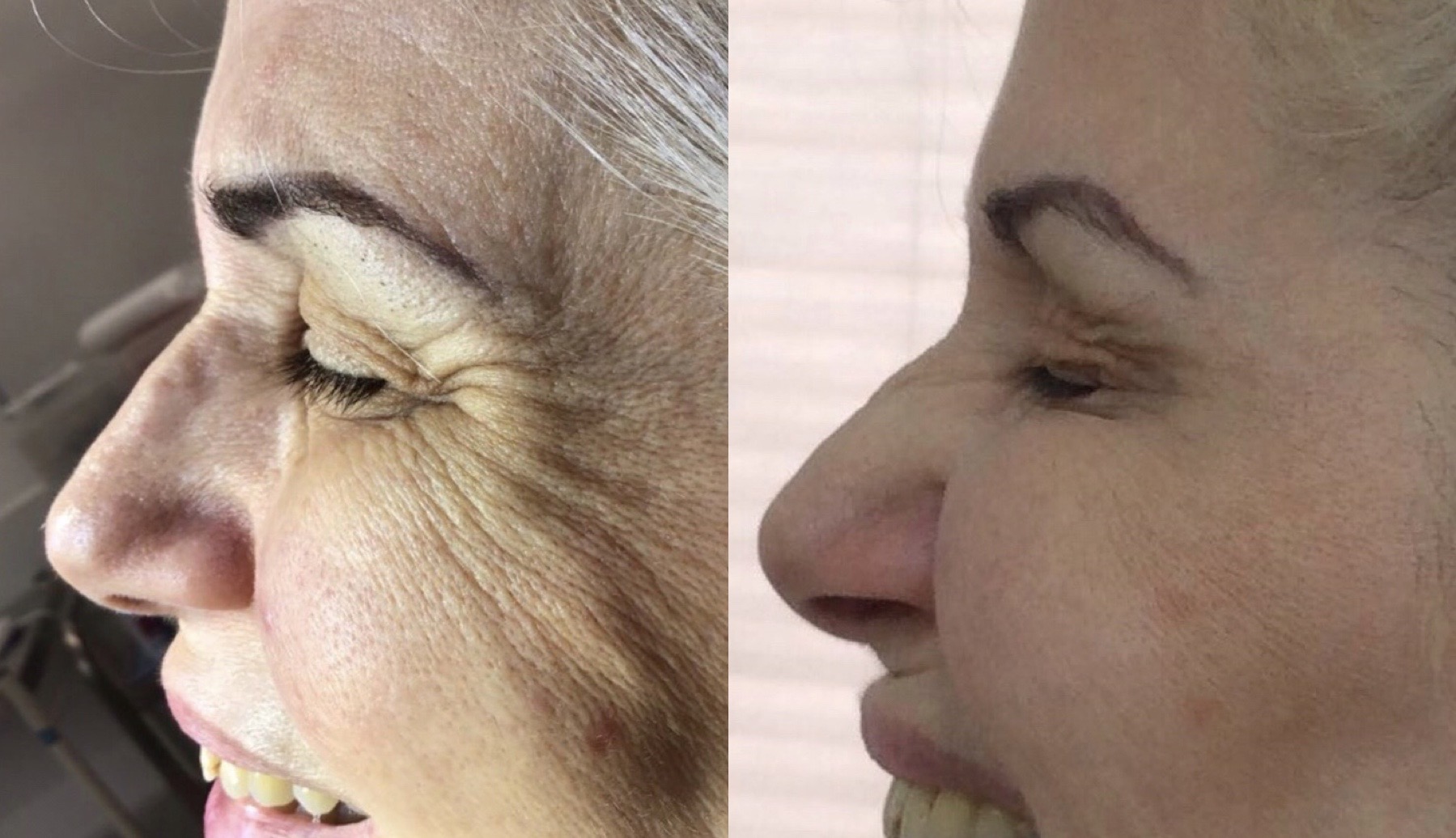Before treatment (left). The peri-oral lines and naso labial lines treated with Restylane (right)