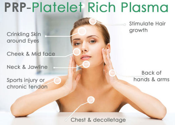 Face : also knows as the “Vampire facial“ PRP improves overall skin texture, decreases the appearance of fine lines and wrinkles around the mouth and eyes, and plumps hollowing areas such as tear trough grooves, cheeks, and temples. PRP can also help smooth both acne and surgical scars.