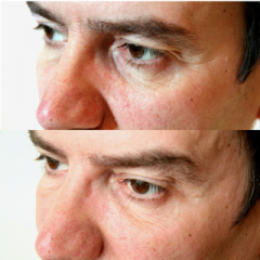 There are many reasons why the area under the eye appears dark. A sunken tear trough can often appear as a dark ridge under the eye due to the shade caused by the hollow and, once corrected, the dark circle disappears. However, when there is pigment present under the eye, the tear trough procedure can improve the appearance but will not get improve the colour. In this case we would combine the tear trough procedure with other treatments for pigmentation such as laser or topical creams.
